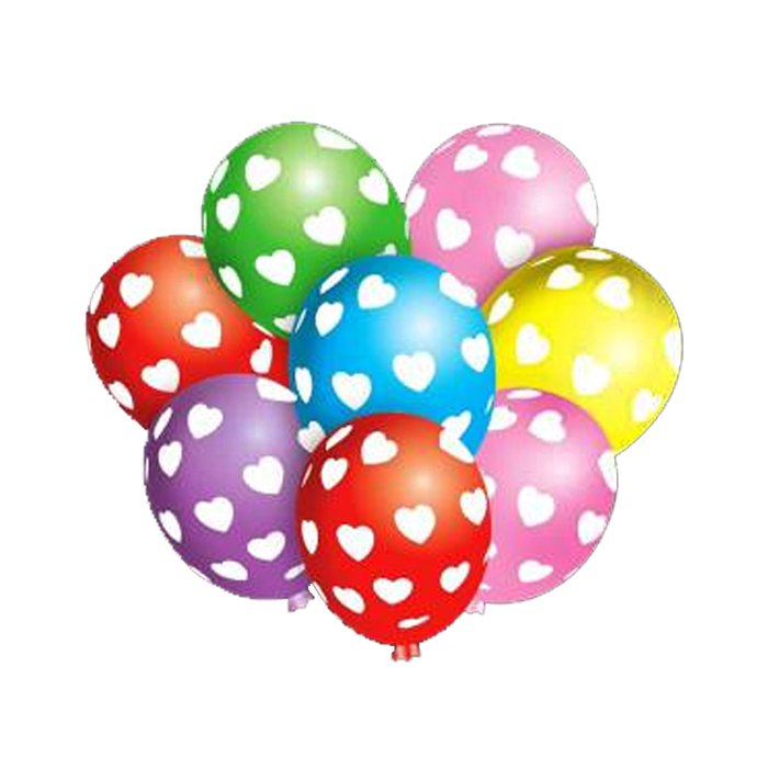 BALON YANG MEMILIKI BERBAGAI MACAM WARNA DENGAN SIMBOL HATI KECIL BERWARNA PUTIH