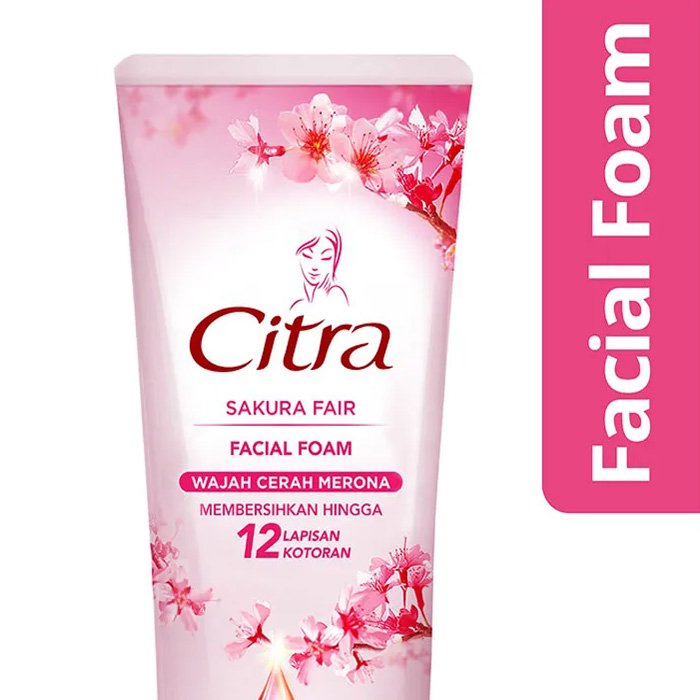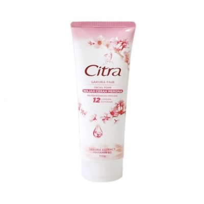 CITRA Sakura Fair Facial Foam [100 g], facial foam yang diperkaya dengan ekstrak bunga Sakura dan Vitamin B3 sehingga dapat menghadirkan wajah cerah merona seperti bunga Sakura.