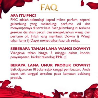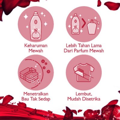 Adalah larutan pelembut dan pewangi pakaian dengan kandungan kapsul mikro-parfum yang diformulasi membuat pakaian tetap lembut bahkan setelah kering dan dapat melepaskan wangi parfum secara perlahan, membuat Anda selalu wangi sepanjang hari seperti menggunakan parfum meskipun sedang berkeringat.