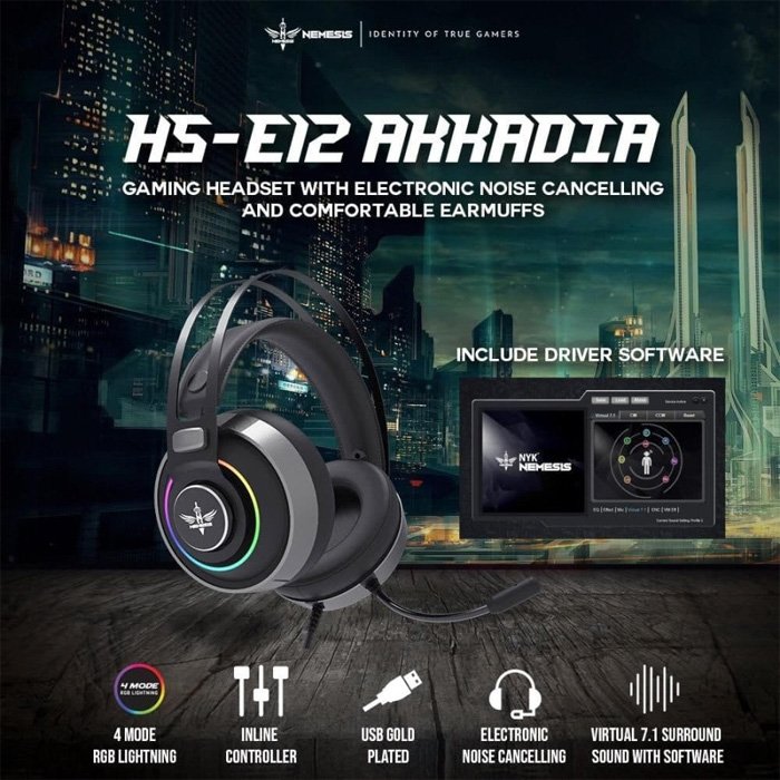 HEADSET GAMING NYK HS-E12 AKKADIA USB 7.1