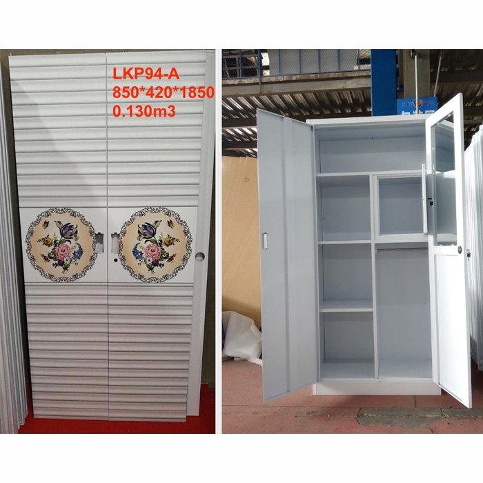 Dengan bahan dasar besi / metal dijamin kuat. Sangat cocok untuk daerah yang lembab dan banyak rayap, karena pasti lebih awet dan tahan lama.Desain yang menarik dengan finishing putih dan corak bunga menambah kesan elegan pada lemari besi ini.Bisa dipakai juga dikantor (ruang ganti), Asrama dan rumah kos