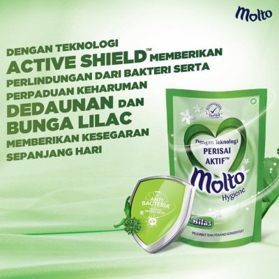Membunuh bakteri penyebab bau apek di musim hujan, dengan perpaduan keharuman dedaunan dan bunga Lilac yang memberikan kesegaran yang bertahan sepanjang hari.