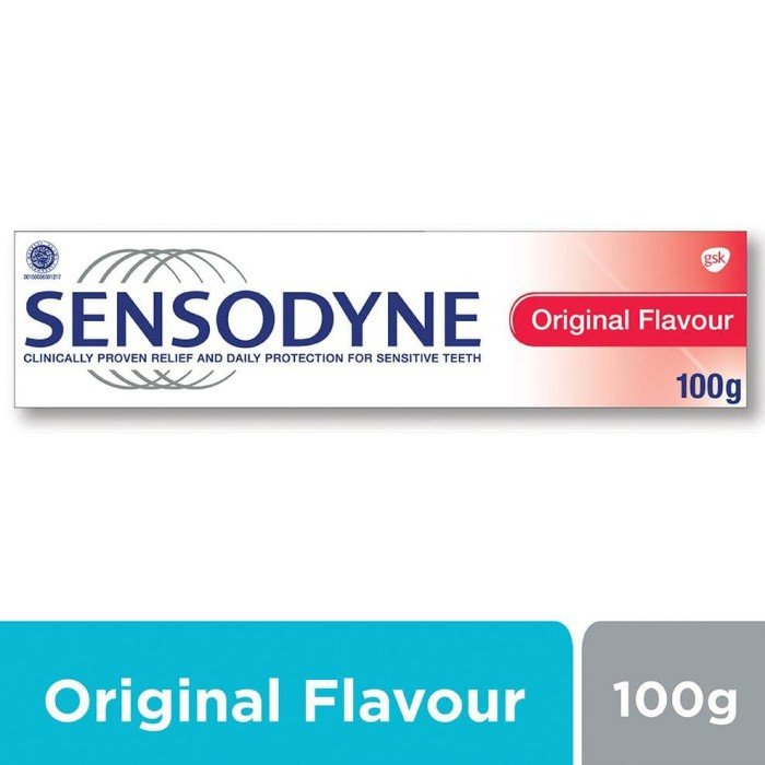 Sensodyne Original diformulasikan khusus untuk gigi sensitif. Mengandung Strontium Chloride yang terbukti secara klinis memberikan perlindungan dari rasa ngilu pada gigi sensitif dengan pemakaian dua kali sehari secara teratur. Perlindungan terhadap gigi sensitif yang tidak akan hilang saat makan atau minum.