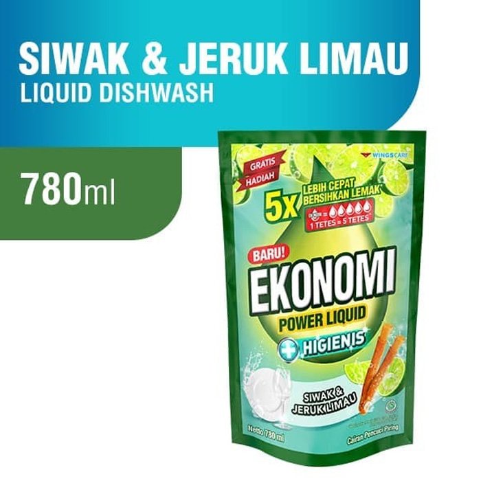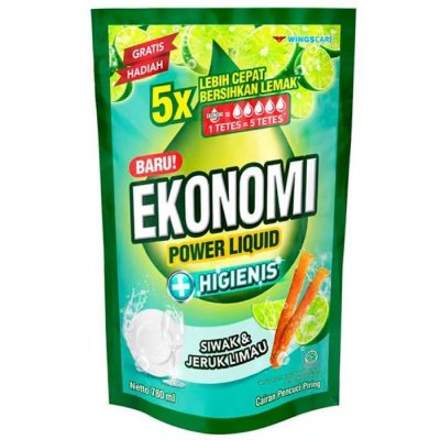 Ekonomi Power Liquid dengan formulasi lebih kental (konsentrat), lebih banyak busa dan lebih besar dengan formulasi POWER LIQUID. Dengan kandungan siwak yang terbukti sebagai bahan aktif mampu membersihkan dan menghilangkan noda serta sebagai anti bakteri pada peralatan masak dan makan sehari - hari.