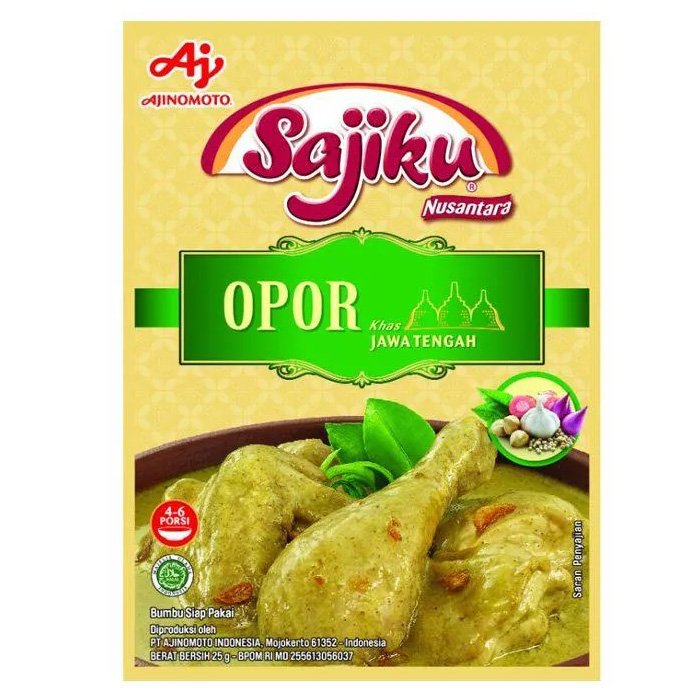 Merupakan bumbu opor siap saji yang terbuat dari bahan campuran bumbu dan rempah-rempah khas Indonesia. Bumbu opor ayam ini dibuat tanpa menggunakan bahan pengawet dan pewarna. sehingga lebih menyerap pada makanan dan akan lebih terasa. Selain itu, Sajiku bumbu opor ayam akan membuat masakan menjadi lebih lezat,nikmat, mudah disajikan dan tentunya dengan rasa yang mantap sehingga Anda bisa kreasikan menu hidangan Anda sehari-hari. Bumbu instan ini sangat praktis untuk membuat opor ayam secara cepat dan mudah.