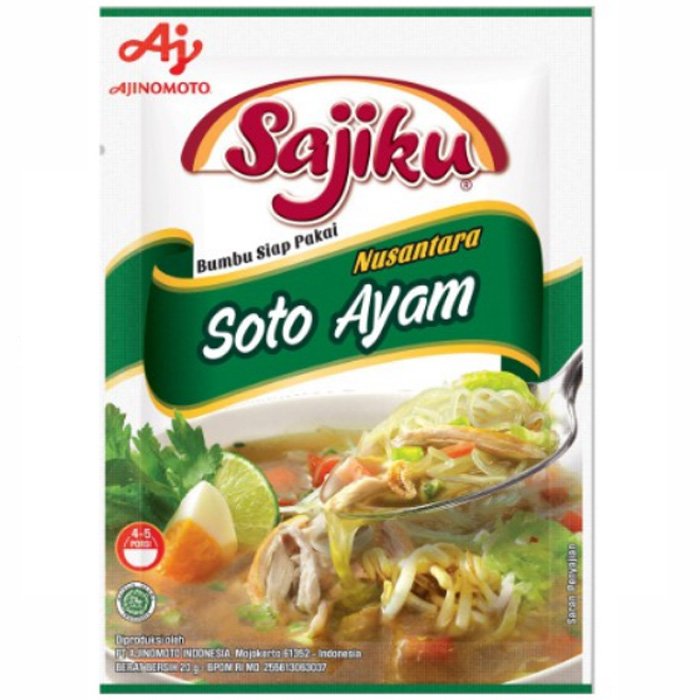 Penggunaan : Didhkan 1 liter air. Masukkan 1/2 kg ayam, rebus hingga matang. Masukkan SajikuĀ® bumbu Soto Ayam. Rebus sampai ayam empuk, lalu angkat dan tiriskan. 2. Goreng ayam hingga kecoklatan, kemudian suwir-suwir. Siapkan suwiran ayam beserta pelengkap soto (tauge, soun, dan telur) ke dalam mangkuk. 3. Siram dengan kaldu soto panas. Taburi bawang goreng, daun bawang, dan seledri. siapkan bersama irisan jeruk nipis.
