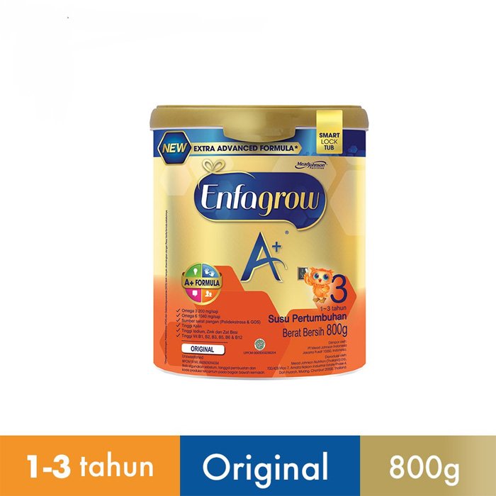 Enfagrow A+3 merupakan susu formula untuk usia 1-3 tahun. Susu formula dibuat agar si kecil mendapatkan sumber energi serta nutrisi yang esensial sehingga dapat mendukung pertumbuhan dan kinerja otak, seperti kemampuan konsentrasi, daya ingat, dan problem solving (pemecahan masalah). Dilengkapi dengan kandungan berbagai vitamin, kalsium serta zat guna lainnya, Enfa mengeluarkan berbagai varian susu yang sesuai dengan usia serta kebutuhan si kecil.