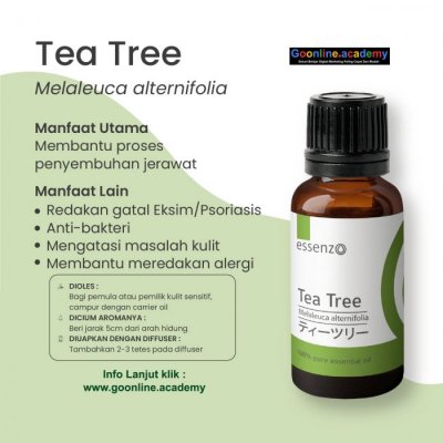 Sudah lebih dari 7 dekade Tea Tree diteliti dan terbukti bahwa bisa membunuh jamur, virus dan juga bakteri. Itu dia yang mebuat Tea Tree Essential Oil dari Essenzo ini sangat berkhasiat untuk menghilangkan JERAWAT & bekasnya, atau mengatasi luka di kulit, karena Tea Tree Essential Oil dari Essenzo terbuat dari 100% konsentrasi liquid Tea Tree Alami tanpa ada bahan campuran apapun.
