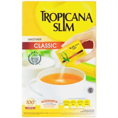 Tropicana Slim Sweetener Classic merupakan produk sediaan pemanis rendah kalori dimana Anda dapat merasakan rasa manis tanpa rasa was-was gula yang tergandung didalamnya. Produk ini bebas gula dan juga randah kalori sehingga dapat dikonsumsi untuk membantu mendukung program diet rendah kalori Anda, mencegah penyakit diabetes, dan menjaga agar badan tetap ideal. Tropicana Slim Sweetner Classic dapat memberikan rasa manis yang sehat disetiap jenis makanan dan minuman favorit anda.