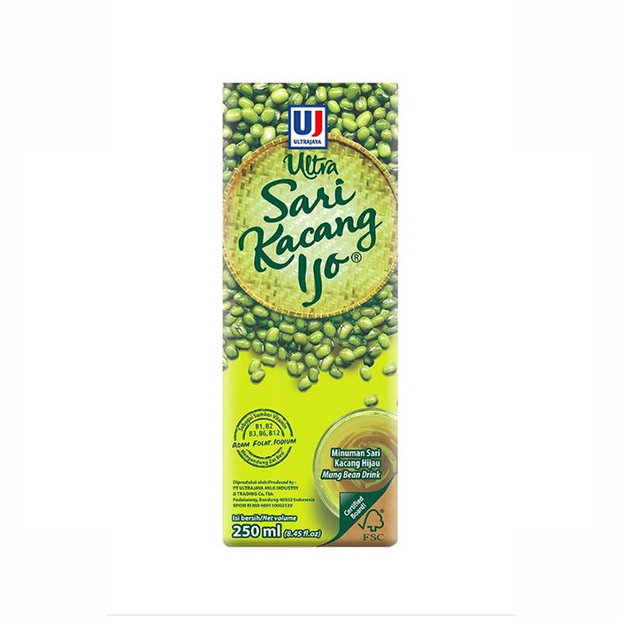 Ultra Sari Kacang Ijo adalah minuman kesehatan ini terbuat dari kacang hijau berkualitas tinggi yang merupakan sumber yang lezat dari Vitamin B, serat makanan dan protein nabati. Minuman ini menawarkan rasa yang lezat, bergizi dan menyegarkan karena dikombinasikan dengan gula kelapa alami dan jahe. Direkomendasikan untuk semua konsumen di semua usia, termasuk anak-anak 1 tahun ke atas, remaja, dewasa, juga tua.