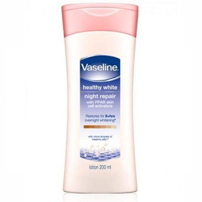 Vaseline Healthy White Night Repair Lotion [200 mL] merupakan body lotion yang dapat mencerahkan kulit selama 8 jam waktu tidur Anda dengan kandungan PPAR skin cell activators untuk kulit lebih cerah yang dapat meresap cepat tanpa rasa lengket. Cocok untuk warna kulit yang tidak merata, kulit kusam, kulit dengan noda hitam, dan kulit kering.